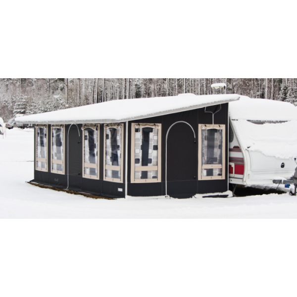 Ett vintertält går lika bra att använda året runt. Perfekt att använda som entré och förvaring av exempelvis skidor och skoterkläder. Vintertält till husbil har en robust stomme för att stå emot vädrets makter året runt. Till det kommer en flexibel förankring för att vara säker på både stabilitet och funktion genom kommande snöstormar. Väggar och tak är tillverkade i en blandning av PVC, akryl eller polyester. Materialet gör att vintertältet fortsätter vara mjukt vid lägre temperatur.