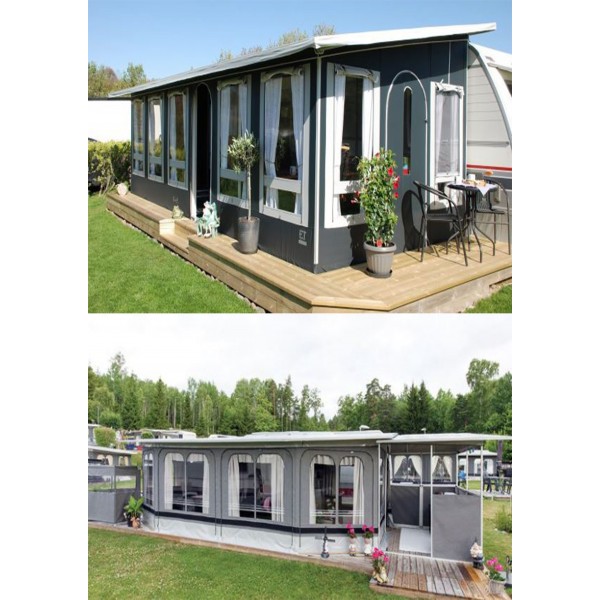 Alla är idealiska fristående åretrunt tält med slussanslutning till husvagnen. Detta innebär att du ka koppla på vagnen och åka och tältet kan stå kvar. Standby och vivaldi tälten är konstruerade för att klara av alla typer av klimat och väderlek. Tak är tillverkat av kraftiga kapellväv och sidorna av stark acrylväv. Det stabila genomtänka stativet är tillverkat av aluminium.