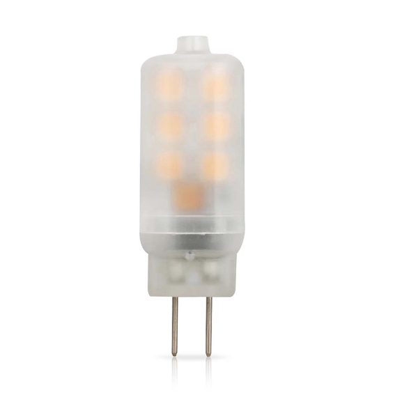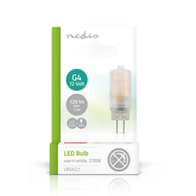 Nedis G4 LED-lampa är en av de mest kompakta LED-lamporna som finns och passar in i de smalaste armaturerna, såsom vitrinskåp, kylskåp, köksfläktar eller dekorativa armaturer i husvagnar, husbilar, båtar eller hemmet. Det frostade glaset på glödlampan hjälper till att sprida det varmvita ljuset.