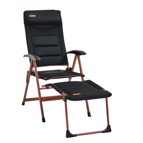 En stilig och bekväm stol med fällbar rygg i 6 lägen. Stoppad dyna med framsida i Air Mesh och baksida i 2x1 vävd textilene. Kan kompletteras med fotstöd.