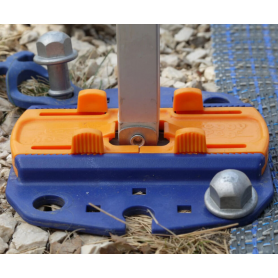 Fästplatta för att bättre kunna låsa benen på husbils- och husvagnsmarkiser mot marken. Fördelen med dessa fästplattor är att de kan lämnas i marken även om man tar in markisen och sedan när man vill använda dem igen så är det bara att låsa fast foten i plattan. Kan även användas för att fästa stormlinor. Finns även tillbehör för att använda tyngder vid camping på asfalt eller andra hårda underlag.