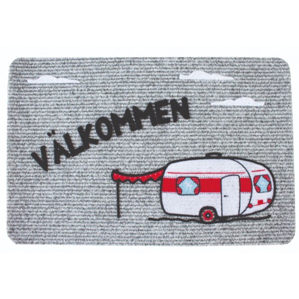 Tillverkad av ribbad nålfilt med gummerad baksida 60 x 40 cm. Mattan kan klippas utan att fransas. Grå.