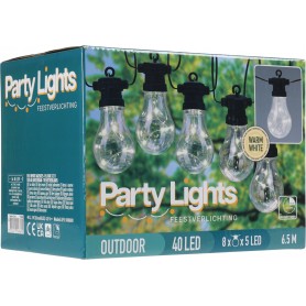 LED-ljuskedja med 8 lampor som ser ut som glödlampor. Inuti varje lampa finns små LED-lampor (5 delar), av vilka totalt 40 finns i hela kedjan. Ljusets nyans är varm vit. Längden på den lätta kedjan är 6,5 m. Drivs av tre AA-batterier (ej medräknat). Lamporna har en 8-timmars timer.