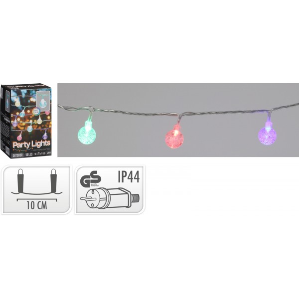 LED-girlander med 50 flerfärgade lampor med en design på 10 cm avstånd mellan varje lampa. Girlanden har en robust kabel för utomhusbruk (IP44), idealisk för att tillföra färg och ljus till ditt utrymme. Med en inbyggd timer är den perfekt för att lysa upp alla evenemang eller utomhusområden. Längd 4,9 meter.