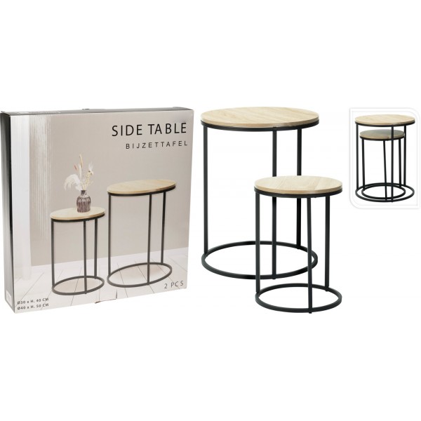 Set med två sidobord – järnkonstruktion med MDF-skiva Ett elegant set med två sidobord i naturlig färg kombinerar en solid järnkonstruktion med en MDF-skiva. Tack vare sin minimalistiska design och två storlekar passar den perfekt in i både moderna och klassiska interiörer. Material: Järn, MDF Färg: Naturliga mått: Litet bord: 300 × 300 × 400 mm Stort bord: 400 × 400 × 500 mm Tubtjocklek: 12 mm Stiliga och praktiska bord som tillför naturlig elegans och funktionellt förvaringsutrymme till ditt hem.
