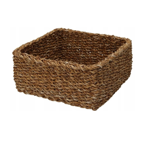 Snygg och praktisk förvaringskorg i flätat jutematerial.