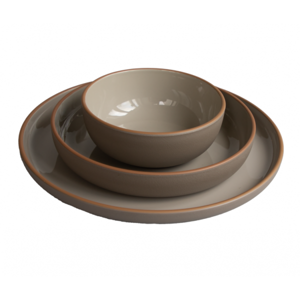 Ge dukningen en stilren och naturnära känsla med denna 12-delars servis i modern design. Tillverkad av rPET (återvunnen PET-plast) kombinerar den elegans med hållbarhet – perfekt för både vardag och fest.