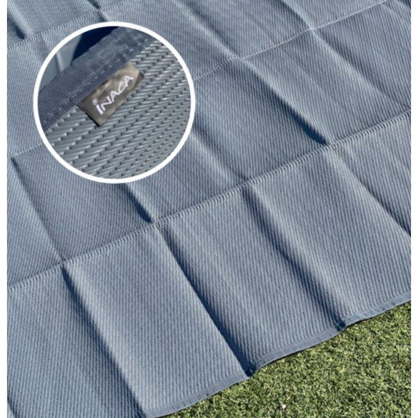 Stilren, enfärgad matta perfekt att ha under den utrullade markisen.