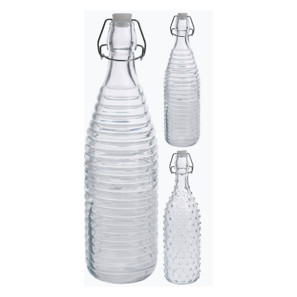 Glasflaska med svänglock 1000ml med randigt eller prickigt mönster.