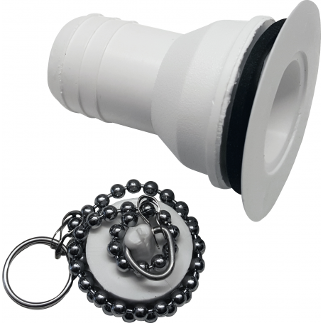 För 30mm hål, av vit plast med plugg 20mm slanganslutning