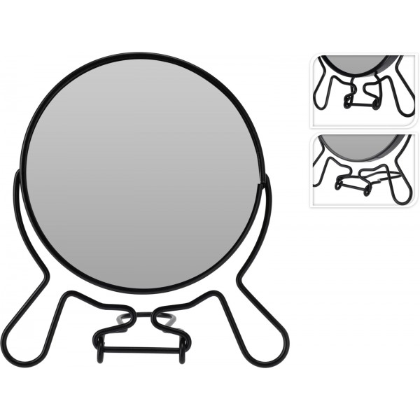 Dubbelsidig spegel med ett litet och stadigt bordsstativ. Färg: Svart