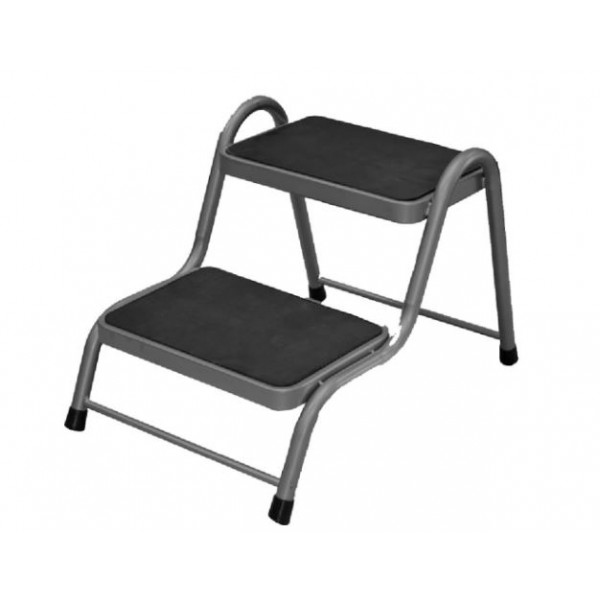 Dubbelt fotsteg i kraftigt lackerat stålstativ med gummiplatta.