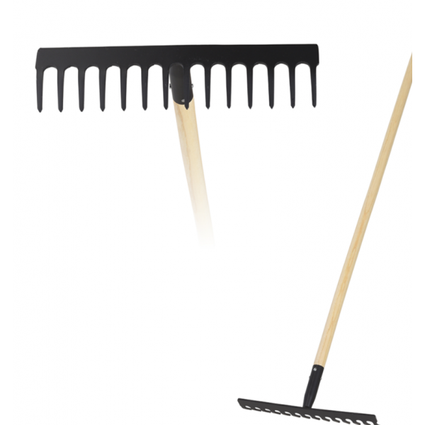 Kratta med träskaft 140 cm svart Kratta idealisk för att kratta löv och för att hålla ordning i trädgården. De har 14 tänder 5 mm tjocka med en trädorn.